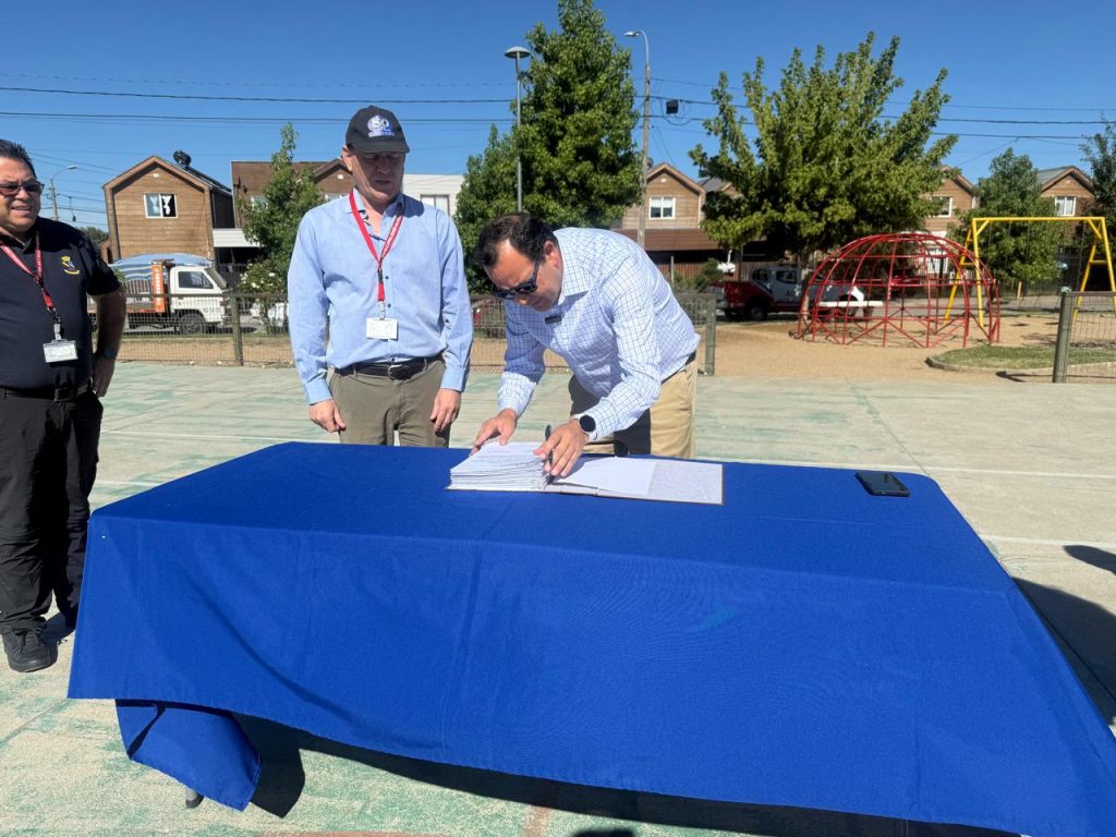 En un día importante para la comunidad de Chillán Viejo, el alcalde Jorge del Pozo llevó a cabo la firma y entrega oficial del terreno destinado a las obras del ansiado proyecto de Mejoramiento del Área Verde y Multicancha en la Villa El Canelo.